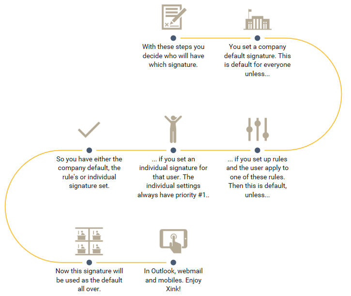 When assigning email signatures, we recommend you prioritize creating a company default first, then drill down to groups and individual settings for a few users. There are three types of email signatures depending on your email client: